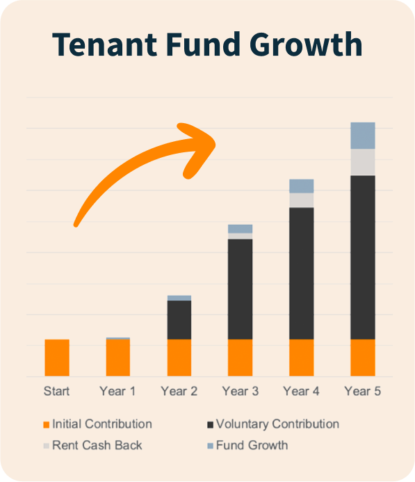 You decide if, when and how much additional cash you’d like to contribute to your Tenant Fund over time. The more you contribute, the more financial benefits you receive.